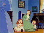 While Mrs. March consults a broker(?) to find a cheap house for her family, Aunt March insists that each girl has to take over chores in the household. Beth is taking care of the pets and Jo helps cleaning the house.