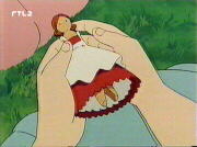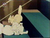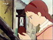 In the meantime Beth finds a half-starved and half-frozen kitten lying in rain and mud. She takes it home and tries to feed it with warm milk, but the kitten is too weak to drink it. After the little cat is dried with a towel (in fact Amy's towel, who isn't very pleased about it), Beth takes the kitten with her to bed to warm it. The kitten soon gets stronger and even Amy gets interested in this little cat and wants to hold it. Unfortunately a little "accident" happens to the cat :-)