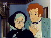 While Mrs. March consults a broker(?) to find a cheap house for her family, Aunt March insists that each girl has to take over chores in the household. Beth is taking care of the pets and Jo helps cleaning the house.